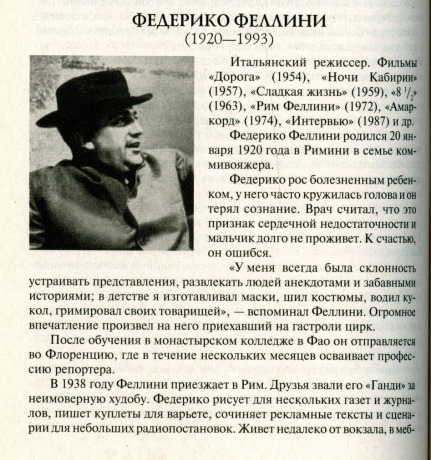 Феллини, Ф. Я вспоминаю ... / Ф. Феллини, Ш. Чандлер. - М. : ВАГРИУС, 2002. - 448 с. - (Мой 20 век). - ISBN 5-264-00733-0.