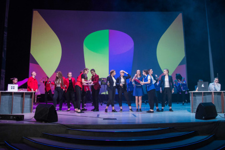 Факультет управления и медиакоммуникаций сыграли сцену противостояния и в конечном счете объединения. Две команды спорили, кто попадет в прямой эфир с репортажем премьеры фильма «#ОДИНДЕНЬЛЕТА», который, кстати, недавно вышел в прокат. Выиграла любовь и дружба. Киновидеотехнический колледж последние годы радует своим креативом. В этот раз они посвятили номер своей профессии: киномеханику. Показав, насколько важен этот «маленький человек» в сфере киноиндустрии, студенты убедили зрителей в его важности: ведь без него мы бы не увидели кино.